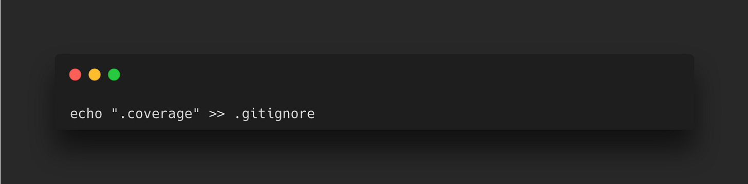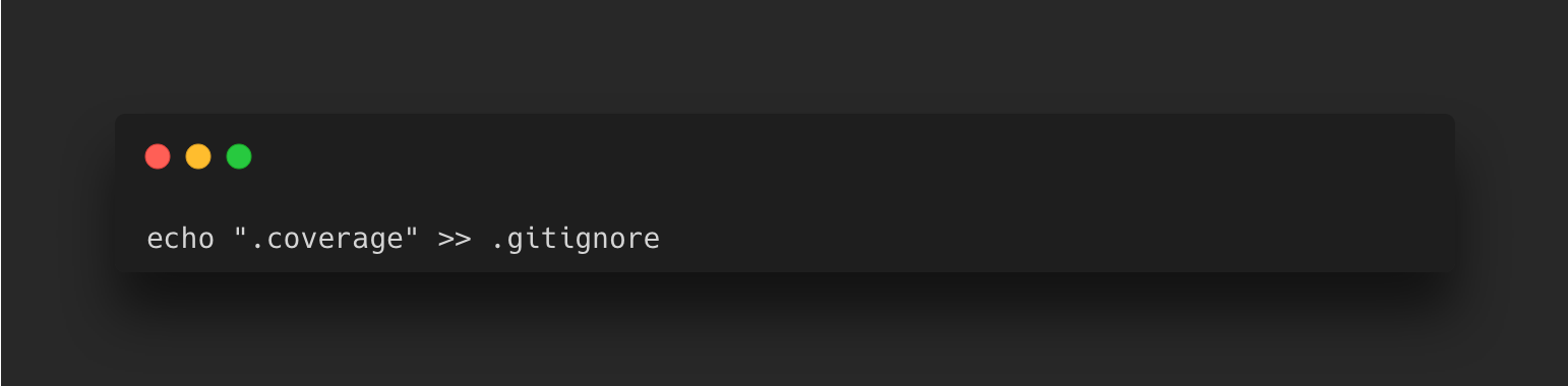 This will generate a .coverage file with statistics about your code. We’ll also add this to our .gitignore file: