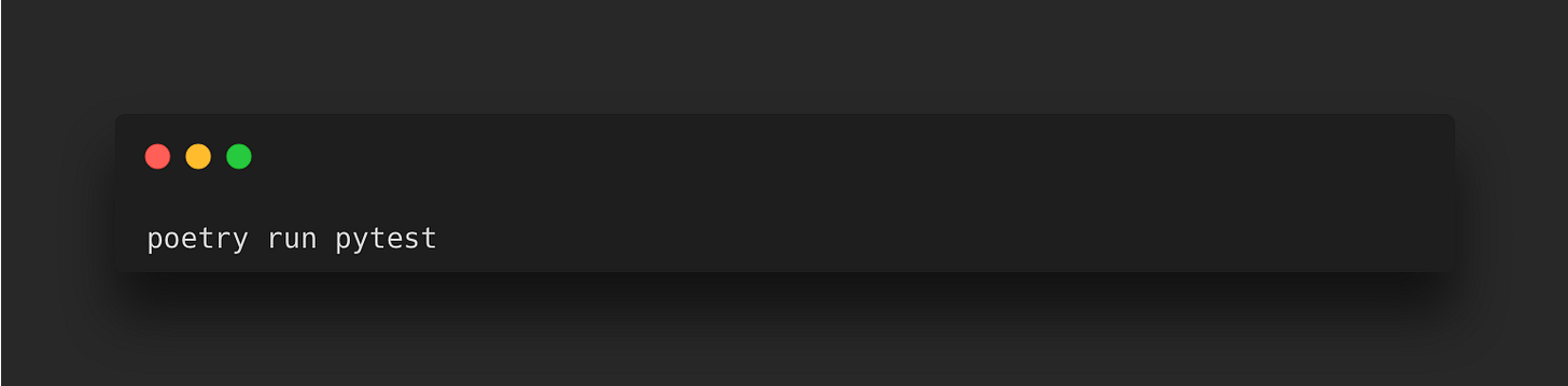 One of the most popular frameworks for testing your Python code is Pytest. It’s the default framework for Poetry and is already listed as a development dependency when beginning new Poetry projects. The alternative framework which comes in the Python standard library is unittest, although the syntax is less pythonic.