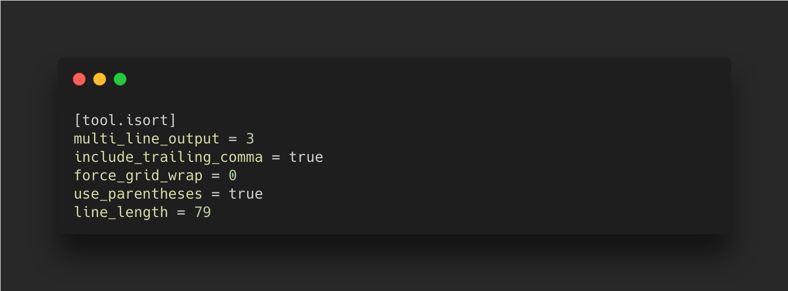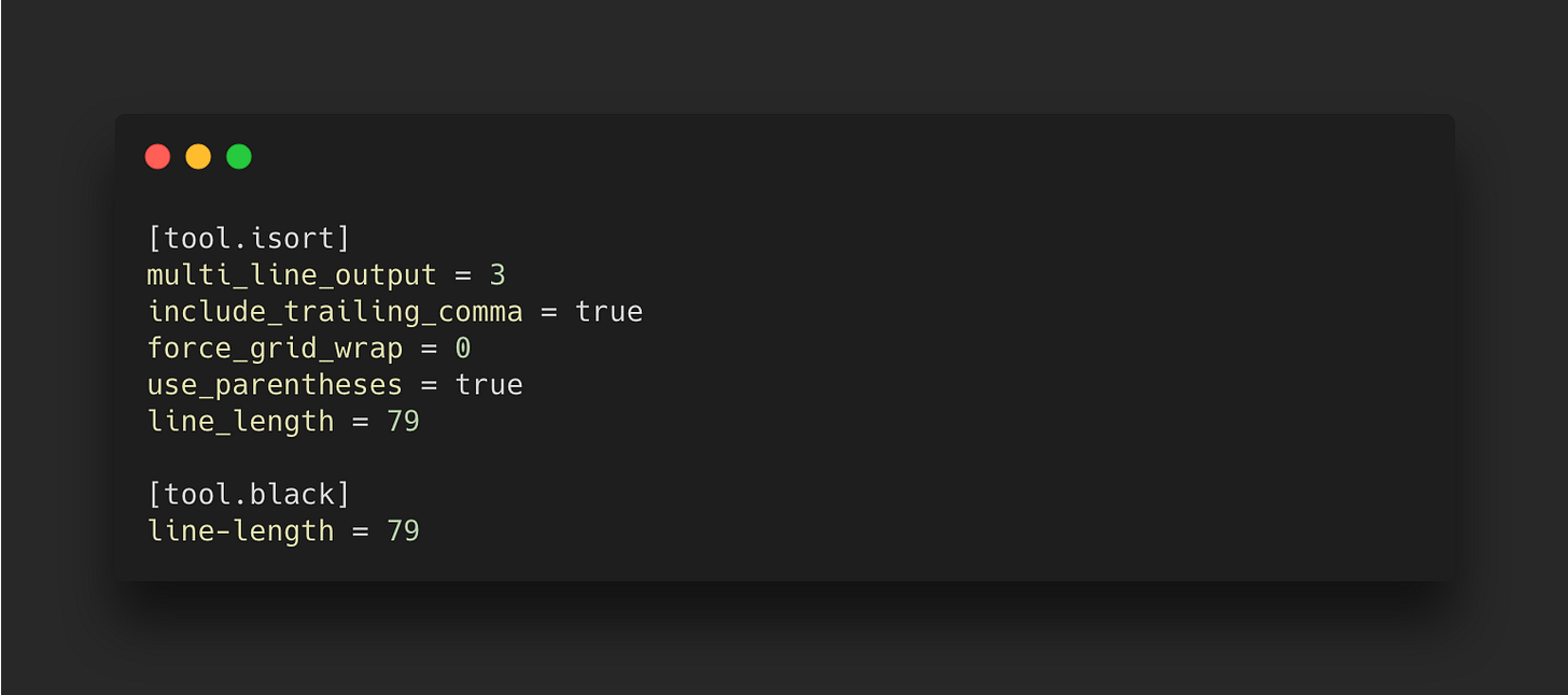 In addition, edit the tool’s settings in the pyproject.toml file to ensure it is compatible with Black