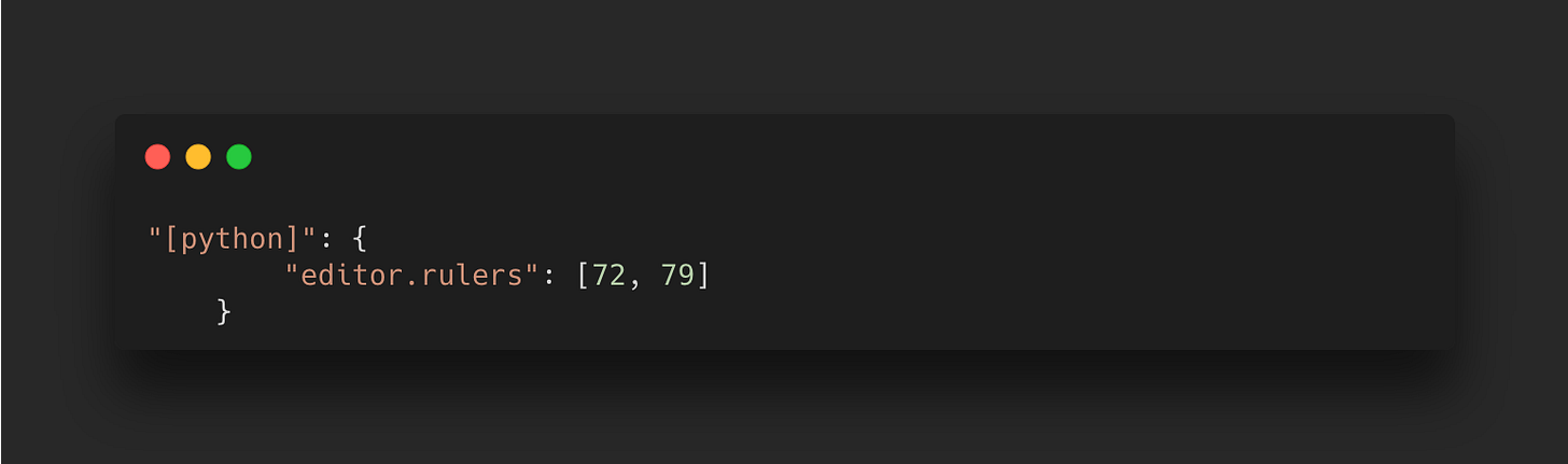 If you’re using Flake8 with Black on pre-commit hooks, you’ll encounter issues as Flake8 will highlight the 79 character line limit. To get around this, you can specify the line length you want to use in the pyproject.toml file under the Black tool settings. You can also set rulers in VS Code by opening the settings.json file by searching for ‘settings’ in the command palette and adding the following: