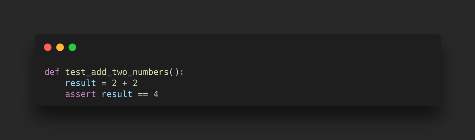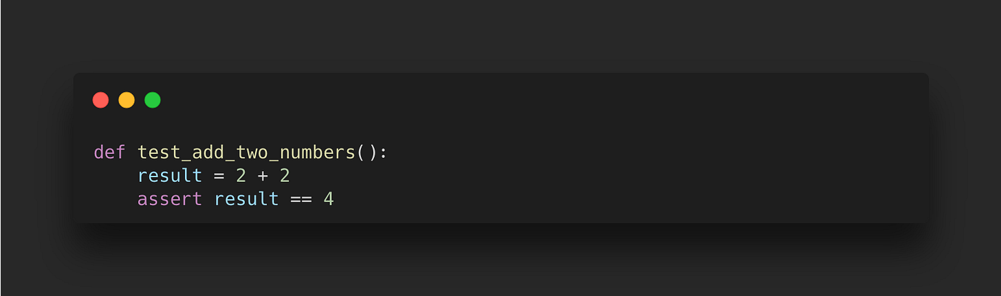 Since I use VS Code as my preferred IDE, it streamlines my testing through its built in pytest capabilities. For example, the following script tests simple arithmetic: